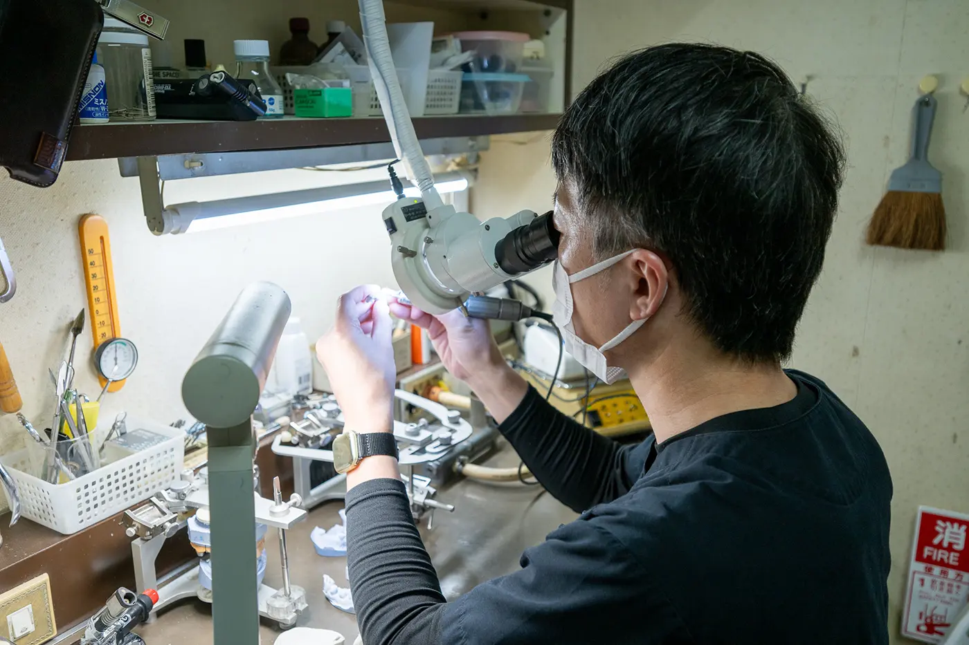 必要に応じて技工士が診療に立ち会います。直接お口の中を拝見することにより、歯の色合いや形態、噛み合わせの確認など患者さんのニーズに細かく対応することができます。